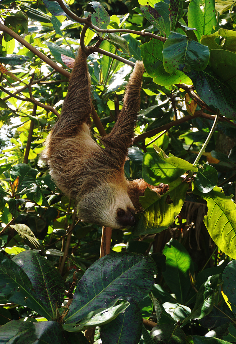虽然在公园里可以一次性看到更多种类的动物,乘坐游船可以观鲸,舟车齐上阵可以到达海滩看海龟产蛋,但其实只要稍稍放缓脚步并加以留意,便能看到路边树上正诠释慢镜头的树懒,停留在参天大树顶端用一张大嘴高歌求欢的巨嘴鸟,庭院里的小树上悄悄滑过的欲与树叶试比绿的绿色蜥蜴,海边陡坡上的巨蜥…这里就好比是一个大动物园,动物们在这儿自由快乐地生活着,同时观赏者另一种动物——人类。人们喜欢来哥斯达黎加,喜欢能和这些生灵们更近距离地、更平和平等地相处。