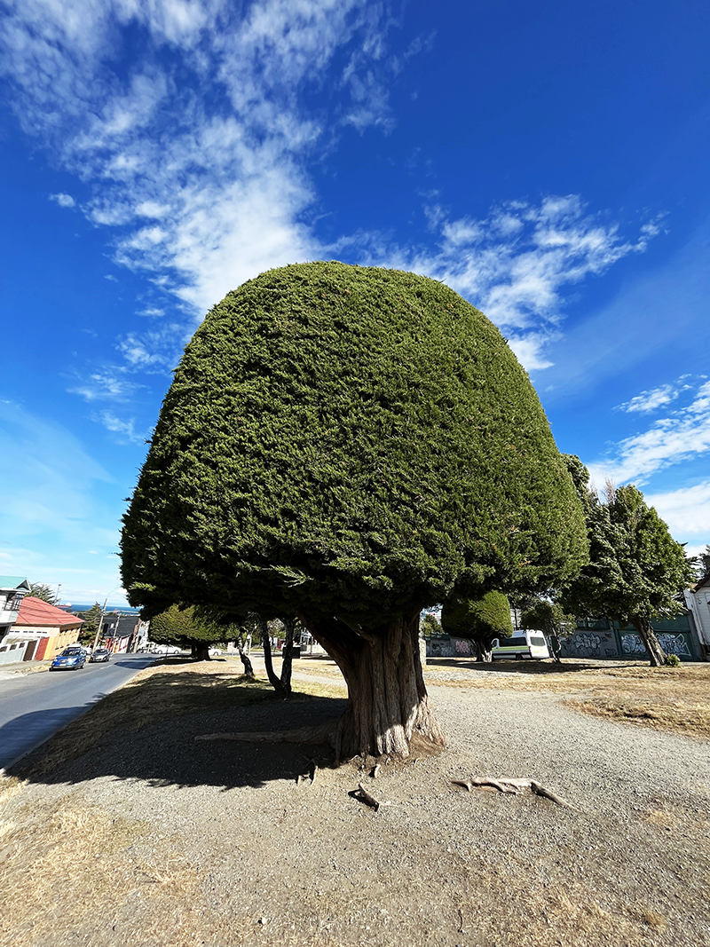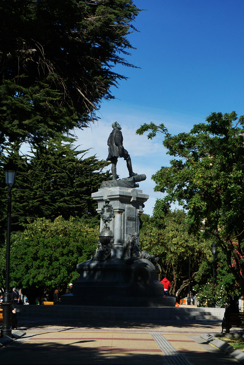 这座巴塔哥尼亚地区最大的城市,其实也小小的。城中是殖民时期的欧洲新古典主义建筑,中心广场上伫立着伟大的麦哲伦雕像--Punta Arenas是麦哲伦省或麦哲伦大区的首府。J指着广场旁边一条街沿上的不锈钢栏杆让我猜其用处。“停自行车的?没有支架”;“行人靠上面休息? 老人吧,不然这么小的城市,走路能有多累?” 看我一脸迷茫,J谜底揭晓,“这是风大的时候让行人抓扶的”。我瞪大了眼睛,“这风得有多大!难道能把人吹走吗?!”“嘿嘿,你到时候来试试!”J露出了已知后事而幸灾乐祸的笑。看来Punta Arenas另一名号“风城”的确名不虚传。不过我也不用在Punta Arenas试了,后来在百内徒步,我便领教了巴塔哥尼亚的“妖风”。